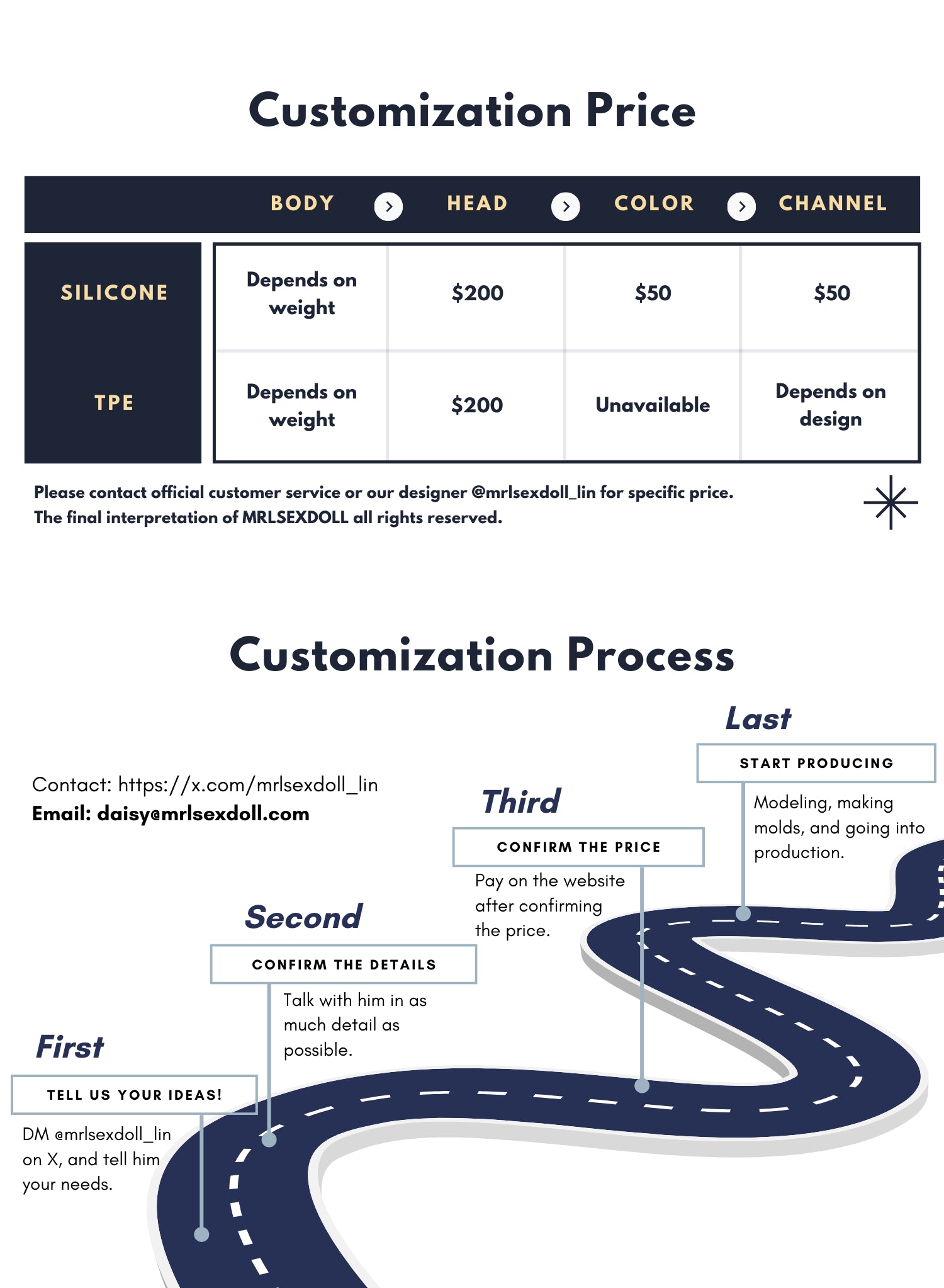 Please contact us directly at daisy@mrlsexdoll.com or our lead designer on Twitter at @mrlsexdoll_lin