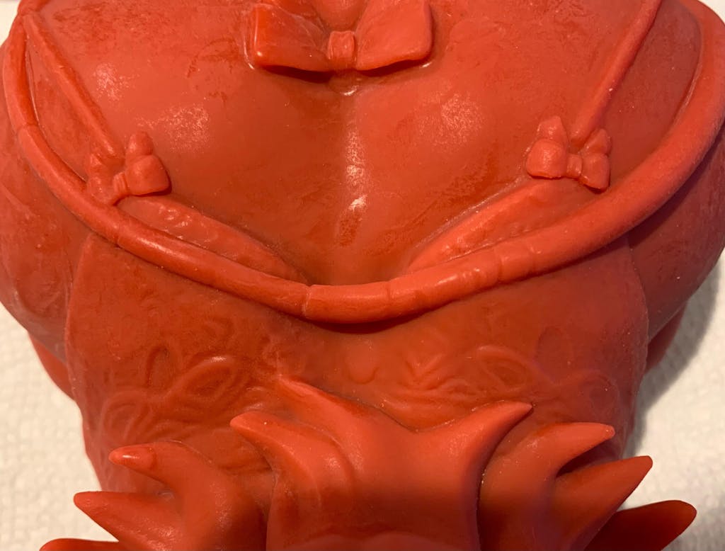 Meru’s face is a stunning tribute to her original design, crafted with meticulous care to capture her seductive charm. Her iconic blunt bangs frame her mischievous, bratty expression. The pointy ears, a hallmark of her succubus heritage, add a touch of otherworldly magic.